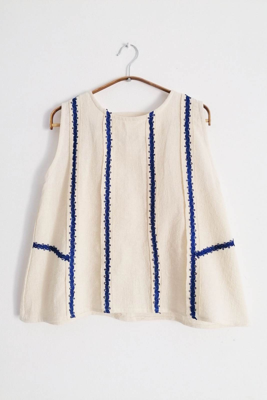 Bluză super catchy si ușor de purtat. Fără mâneci, cu benzi decorative aplicate pe partea din fata.
