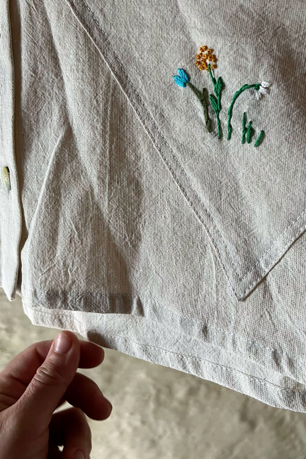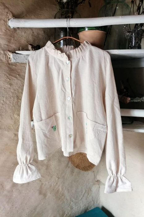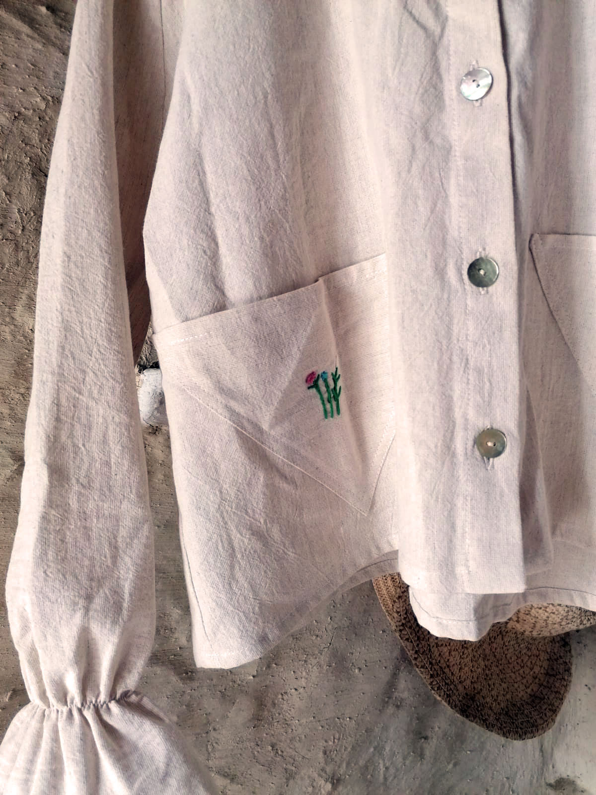 Cămașă din bumbac cu textură de in, mâneci raglan si buzunare triunghi.