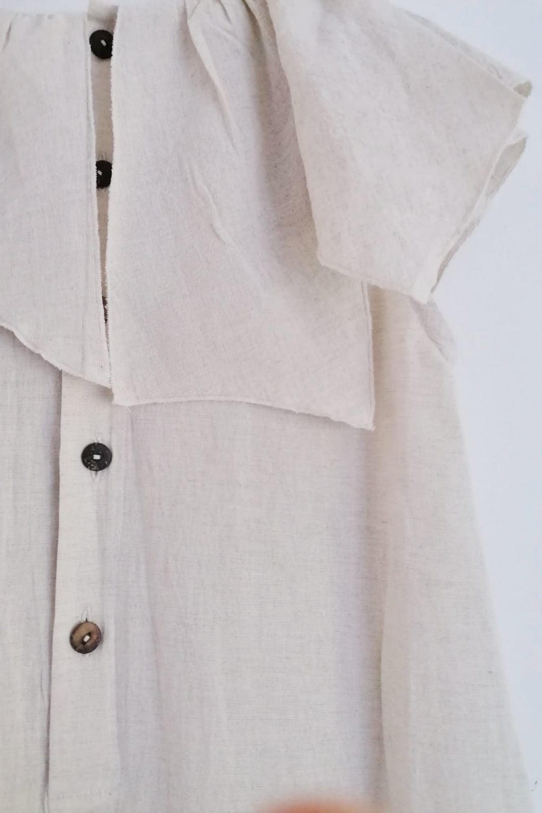 Floare Dress Rochie din bumbac cu buzunare laterale si guler asimetric. Nasturi din cocos la spate. Formă ușoară, lungime medie. Compoziție: 100% bumbac.
