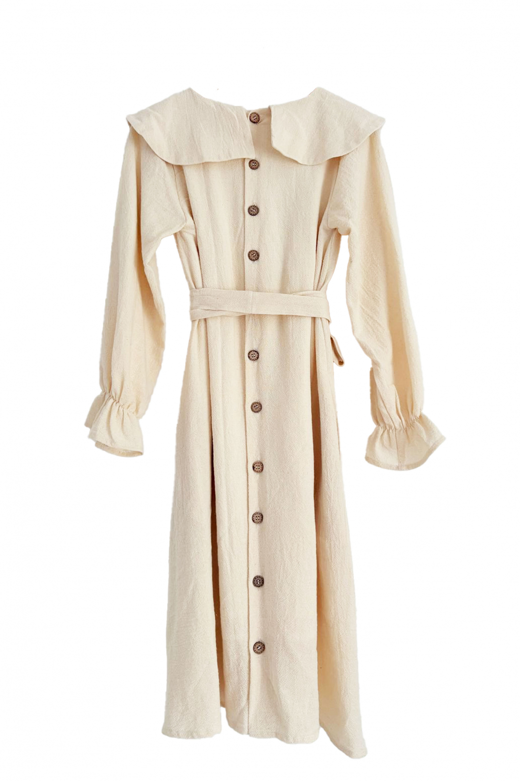 Komorebi Natur Dress Rochie din bumbac texturat, lungă și de impact prin forța pe care o transmite. Guler amplu și brodat manual. Dublata cu un bumbac subțire pentru a reduce din transparență. Nasturi din cocos la spate. Mâneci clopot. Modelul din poza este in stoc, dimensiunea S/M dar putem realiza la comanda orice dimensiune. Puteți specifica dacă doriți aceeași broderie sau una personalizată. De asemenea și alegerea culorii poate fi discutată. Fiecare piesă este realizată in spațiul nostru de creație și în colaborare cu alte ateliere mici.