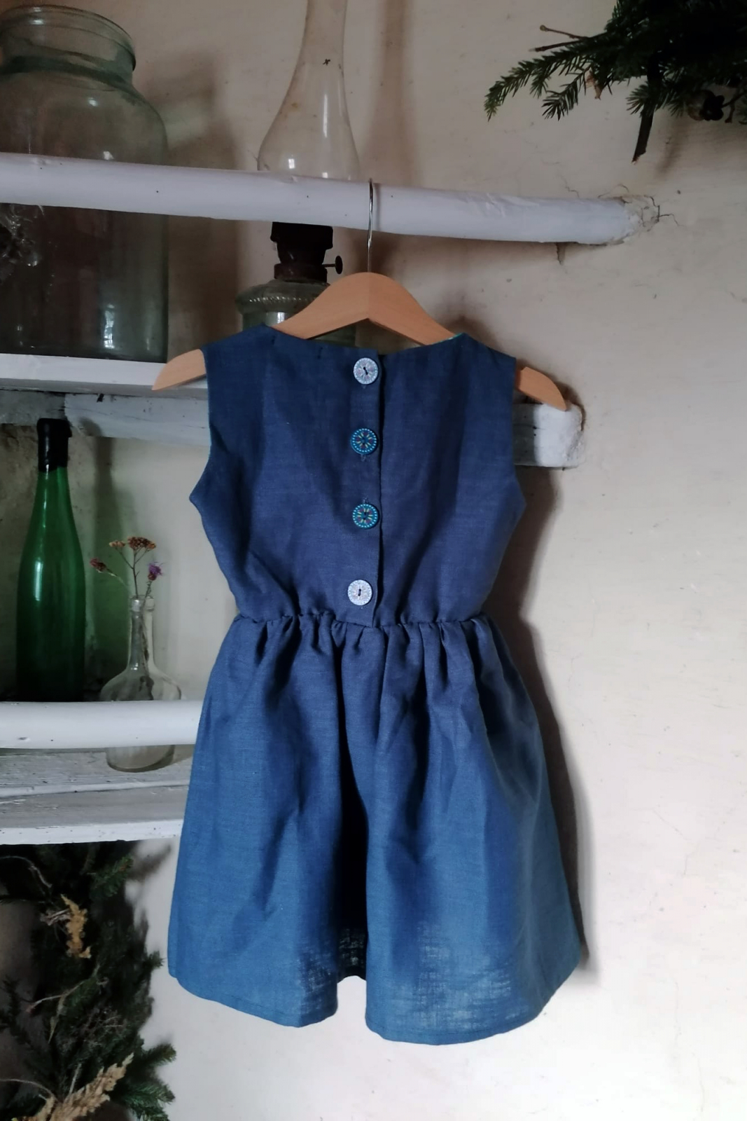 Rochie din in albastru marin inchis.