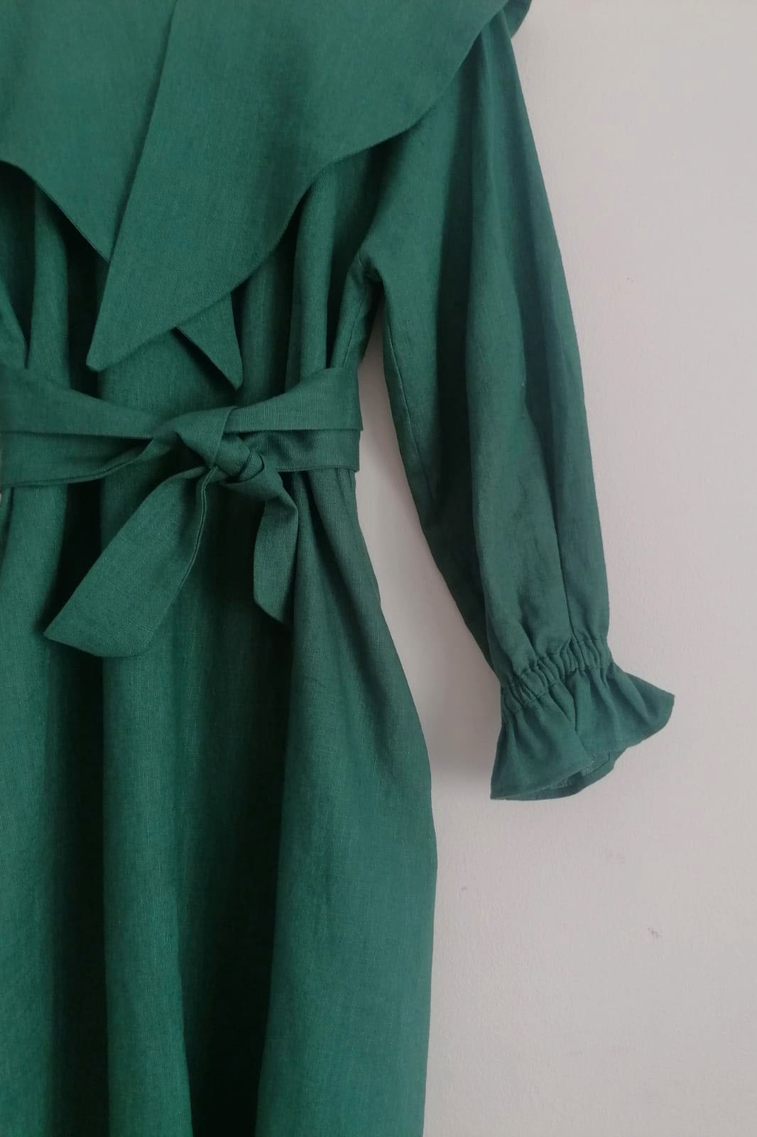 Komorebi Dress Rochie din in lungă și de impact prin forța pe care o transmite. Aș putea spune că este o rochie care îmi amintește de o plimbare prin pădure, printre copaci, in liniștea și forța naturală a naturii. Guler amplu ce poate fi brodat manual, la alegere. Nasturi din cocos la spate, până jos. Mâneci clopot. Această piesă este disponibilă la comandă. Puteți specifica dacă doriți broderie personalizata. De asemenea și alegerea culorii poate fi discutată. Fiecare piesă este realizată in spațiul nostru de creație și în colaborare cu alte ateliere mici.