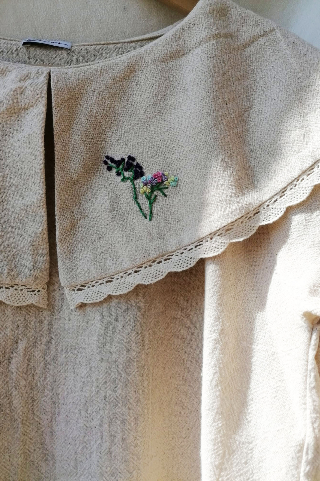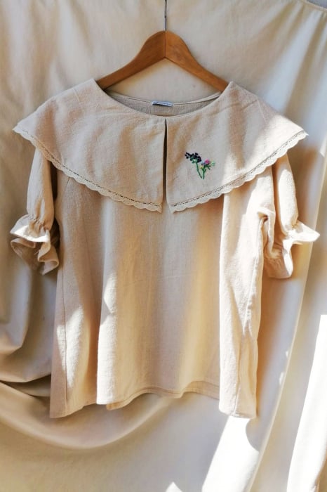 Bluză din bumbac ușor texturat, organic cu mâneci scurte clopot.