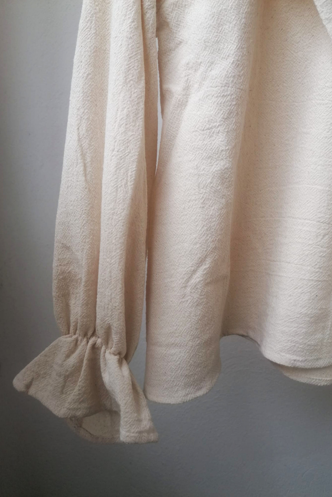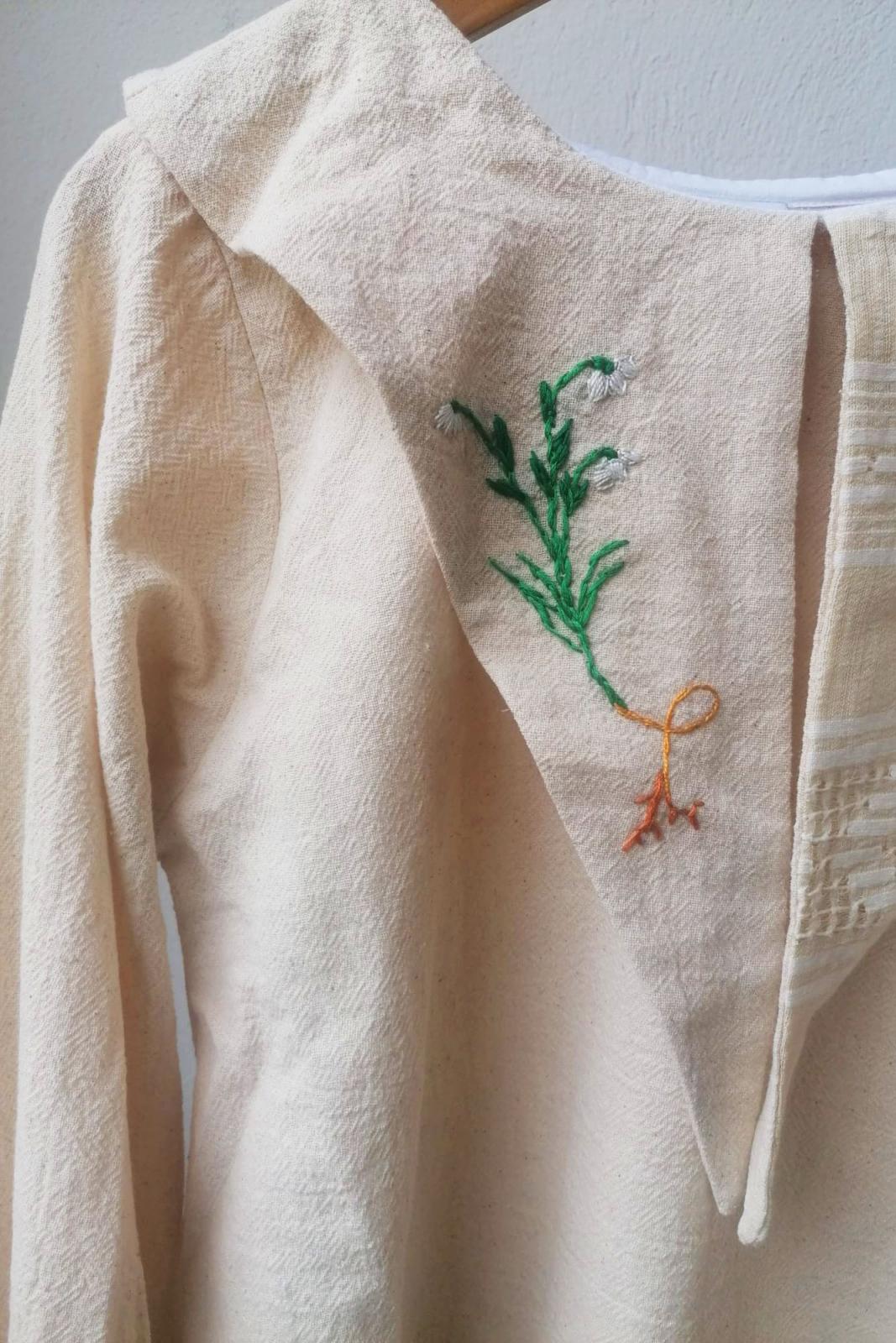 Bluză din bumbac ușor texturat cu broderie manuală pe guler.